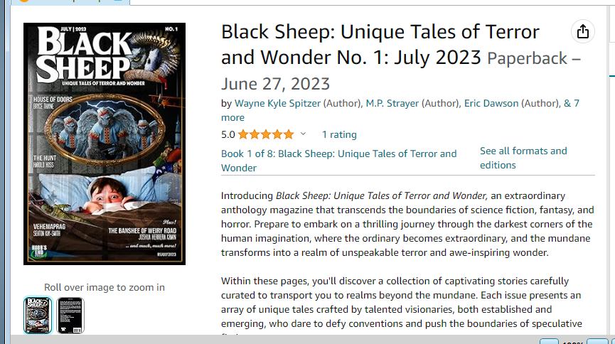 A book went on sale this month with one of my stories in it. Go to my author site or just hop on Amazon and search for Black Sheep #11. It contains ten stories of speculative fiction, and man, some of the stories are weird.
