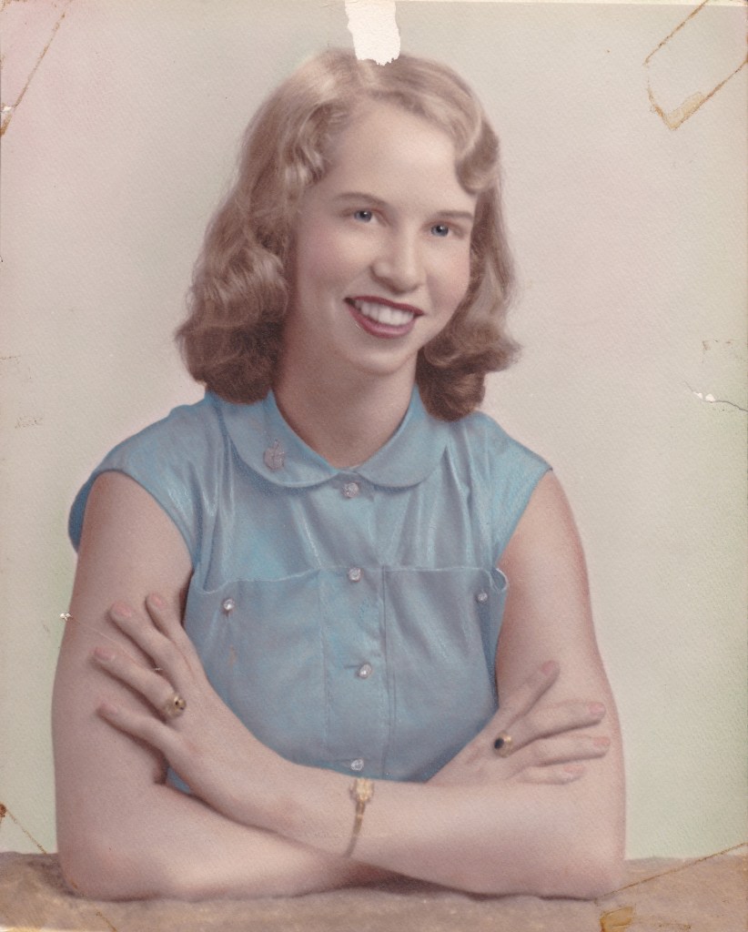 Later in the evening, Mary’s frenemy, Edith, showed up with her new boyfriend, 22-year-old Alton Bass. The six-foot tall, handsome blond-haired blue-eyed farm boy caught every girl’s eye. He was quite a catch. He said later that he felt an instant connection with the party hostess. Within a few days Alton had broken up with Edith and paid a call on Mary. She was thrilled to be asked out by such a handsome boy, with a car, and making Edith mad was a bonus. Soon Alton had a date with Mary every weekend. He also came by frequently in the evenings after his farm chores were done. He would play cards and board games with Mary’s brothers while she finished her schoolwork. Father Reid said no courting until that was done. Alton had no brothers but three of Mary’s five brothers lived at home. They readily adopted Alton and made him part of the family.